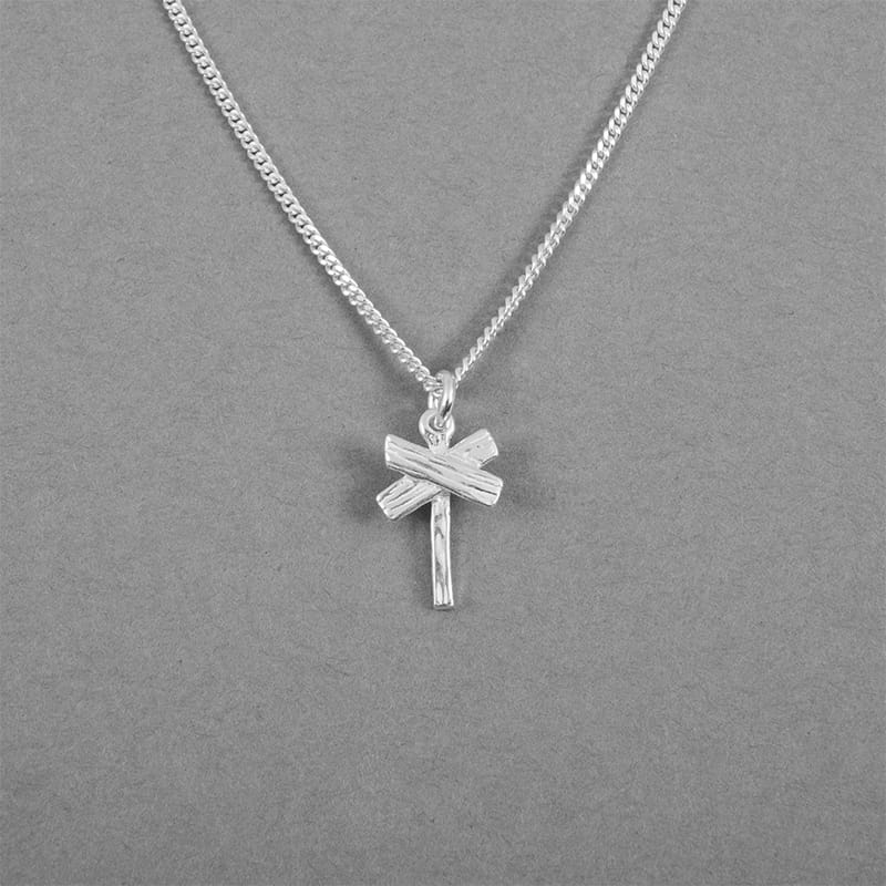 A small silver pendant with a hand-engraved motif of an articulated cross. Necklace 42 cm included.