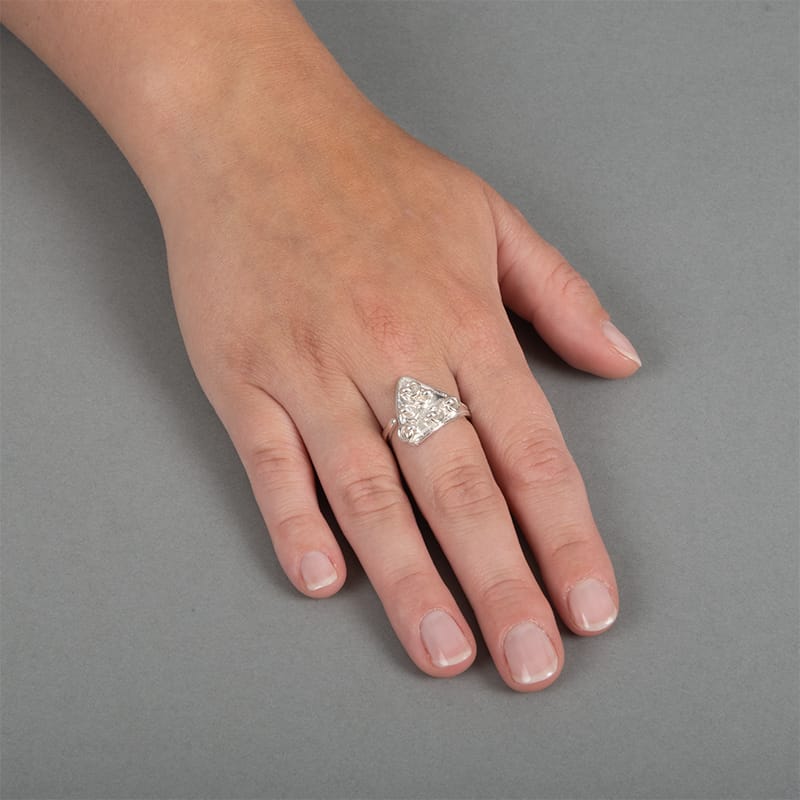 Öppen ring, justerbar ungefärligen mellan storlekarna 17-20.