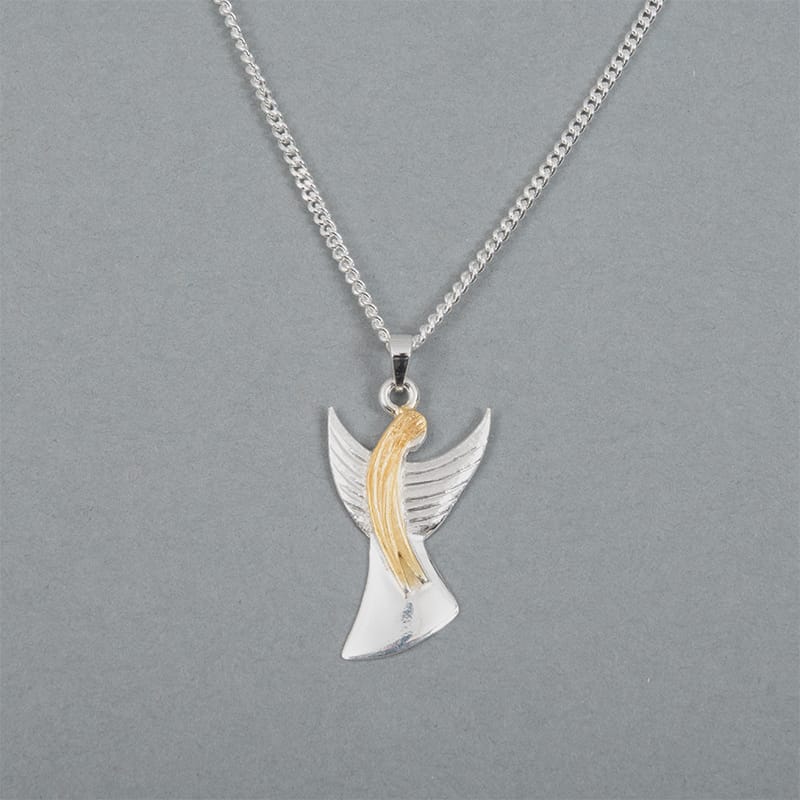 Hänget är en ängel i silver med guldpläterat hår. Hänge inklusive 45 cm silverkedja.